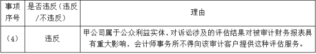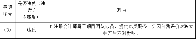 要求:针对上述第(1)至(6)项,逐项指出是否可能存在违反中国注册会计师职业道德守则有关独立性规定的情况,并简要说明理由。将答案直接填入答题区相应的表格内。