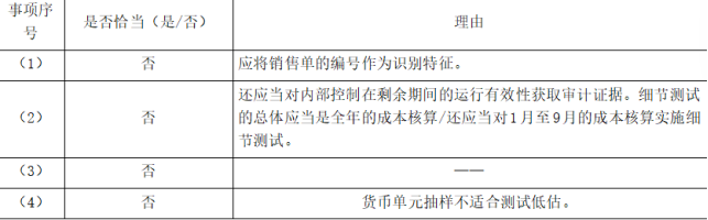 (2)A注册会计师认为仅实施实质性程序不能获取与成本核算相关的充分、适当的审计证据,因此拟实施综合性方案,测试相关内部控制在2022年1月至9月期间的运行有效性,并对2023年10月至12月的成本核算实施细节测试。