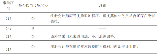 要求:(2)针对资料三第(1)至(4)项,假定不考虑其他条件,逐项指出A注册会计师的做法是否恰当。如不恰当,简要说明理由。将正确答案直接填入答题区的相应表格内。