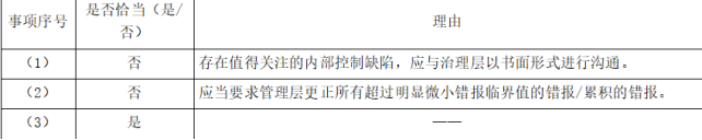 要求:(4)针对资料五第(1)至(3)项,假定不考虑其他条件,逐项指出A注册会计师的做法是否恰当。如不恰当,简要说明理由。将答案直接填入答题区的相应表格内。