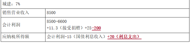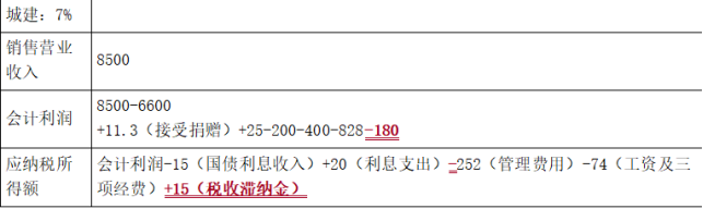 问题(7):税收滞纳金不可以税前扣除,营业外支出应调增应纳税所得额=15(万元)。