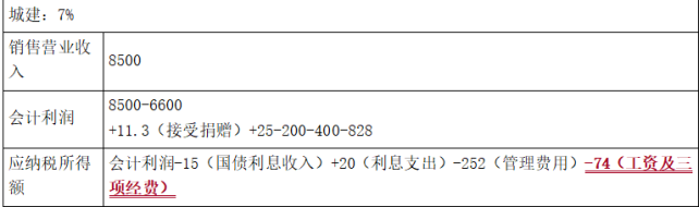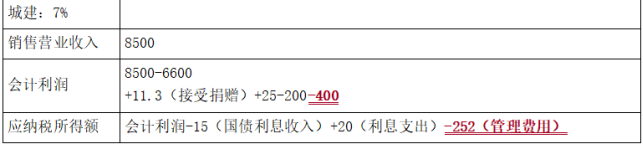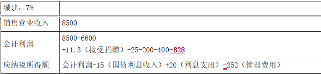 问题(10):会计利润=8500-6600+11.3(接受捐赠)+25-200-400-828-180+30-100=258.3(万元)