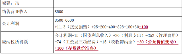 问题(9):存货跌价准备不得在税前扣除,应纳税调增100万元。