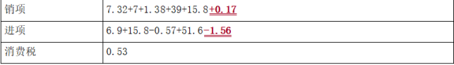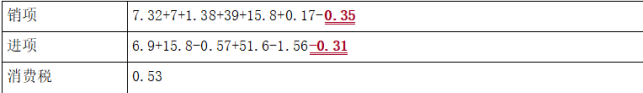 问题(9):本月增值税销项税合计=7.32+7+1.38+39+15.8+0.17-0.35=70.32(万元)