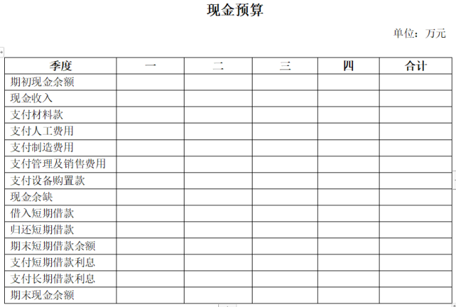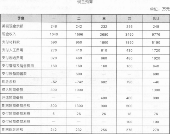 (8)该公司的最低现金余额为200万元,如果低于现金余额则向银行借入短期借款,借款金额为100万元的整数倍,短期借款的年利率为8%,按季支付利息。当企业有多余现金时,优先归还短期借款,还款金额为100万元的整数倍,假设短期借款发生在季度初,还款发生在季度末。目前该企业没有短期借款。
