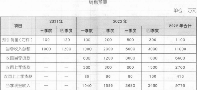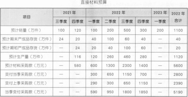 (2)该公司的生产政策为:每个季度末的存货量为下季度销量的20%。预计2023年第一季度的销量为200万件。