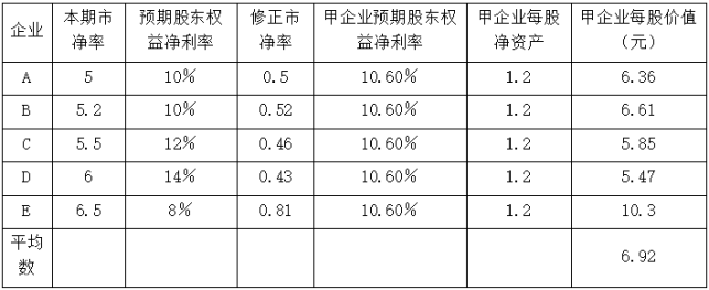 甲企业每股价值=1.01×3.4%×100×2=6.87(元/股)