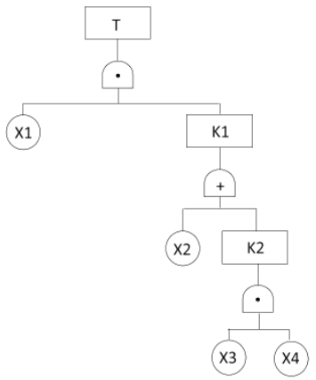 某故障树如图所示,设故障树中各基本事件的发生概率分别为:q1=0.01,q2=0.02,q3=0.03,q4=0.04.求顶上事件发生的概率。