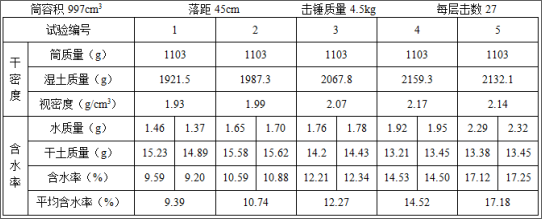 不定项选择题 某工程测得土的击实试验数据如下:结合表中数据完成下列问题: