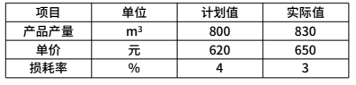 某商品混凝土目标成本与实际成本对比如下表,用因素分析法计算,单价的变动对成本的影响是()元。