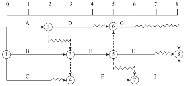 某工程双代号时标网络计划如下图(时间单位:天),工作A的总时差为( )天。