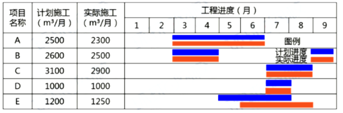 某混凝土工程施工情况如下图,清单综合单价为 1000 元/m3,按月结算,根据赢得值法,该工程 6 月末进度偏差(SV)