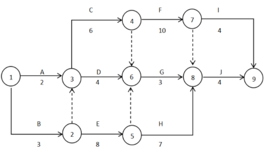 某工程双代号网络计划如下图所示,工作G的自由时差和总时差分别是( )。