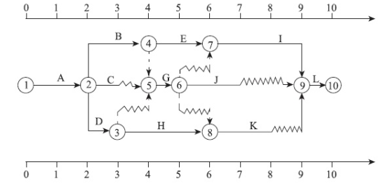 某双代号时标网络计划如下图,工作G的最迟开始时间是第( )天。