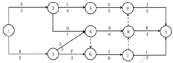 某分部工程双代号网络计划如下图所示,其中工作F的总时差和自由时差分别为( )。