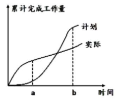 某工作实施过程中的S曲线如下图所示,图中a和b两点的进度偏差状态是( )。
