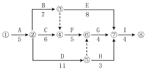 关键工作为A→B→F→G→I 或①→②→③→④→⑥→⑦→⑧。