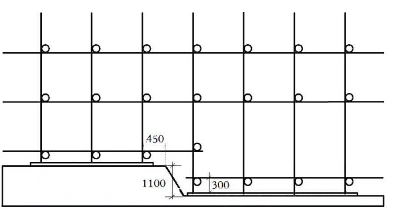 3、错误之处一:脚手架立杆基础不在同一高度时,高处的纵向扫地杆向低处延长一跨与立杆固定。正确做法:脚手架立杆基础不在同一高度时,必须将高处的纵向扫地杆向低处延长两跨与立杆固定。