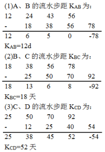 1.A、B、C、D 四个施工过程之间的流水步距计算如下: