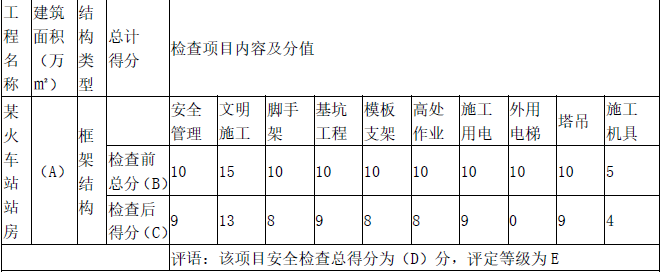 ②合格:分项检查评分表无零分,汇总表得分值应在80 分以下,70 分及以上。