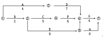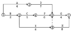 计划关键线路 ①→②→④→⑥→⑦ 工作为: B C F G