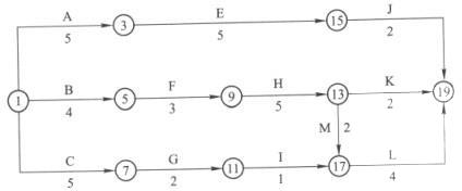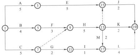 3.为了减少机械闲置时间,如果工作C开始时间往后推2个月开始。理由:工作C与工作H之间机械闲置2个月;工作H与工作J之间机械不闲置,故工作C开始时间往后推2个月后,则机械可连续使用,无闲置时间。
