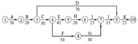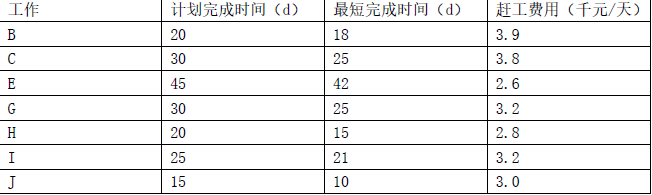 (2)工作C 压缩5 天,工作E 压缩3 天,工作H 压缩5 天,工作I 压缩2 天,工作J 压
