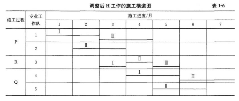 调整后H工作的施工横道图,见表1-6。