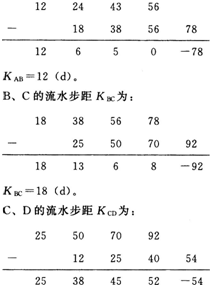 1.(1)A、B、C、D四个施工过程之间的流水步距计算如下: