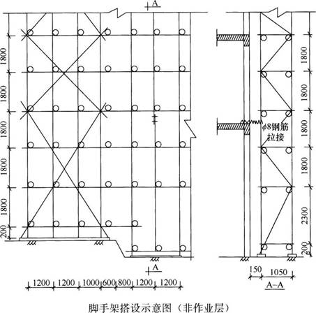 (4)连墙件用钢筋拉接(不能采用软连接);