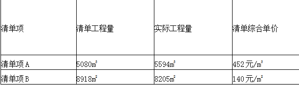清单A结算的清单费用5080×(1+5%)×452+[5594-5080×(1+5%)]×452×(1-5%)=2410968+111644=2522612元=252.26万元。