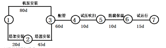 (2)附加说明:管道试压吹扫与防腐保温两工作之间有搭接作业的可能;考虑试运行不可预见因素多,试运行15d时间有压缩余地,这三项工作存在缩短工期的潜力。