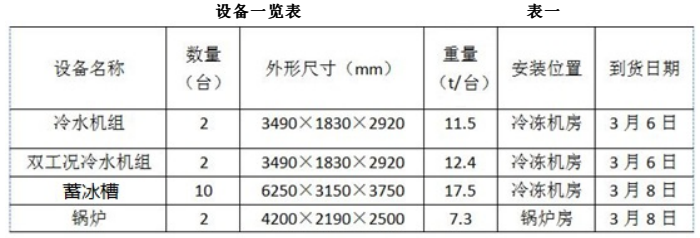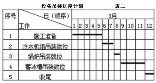 <3>.进度计划中设备吊装顺序不合理之处:锅炉吊装就位以后进行蓄冰槽吊装就位。