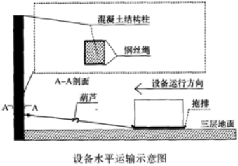 (1)设备的牵引绳不能直接绑扎在混凝土结构柱上,应在混凝土柱四角使用木方(或钢板)保护;