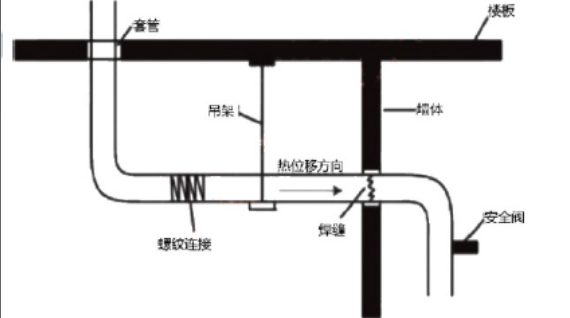 (2)吊杆与管道垂直安装错误。正确做法:有热位移的管道,其吊杆应设在位移的相反方向,并按位移值的1/2偏位安装。