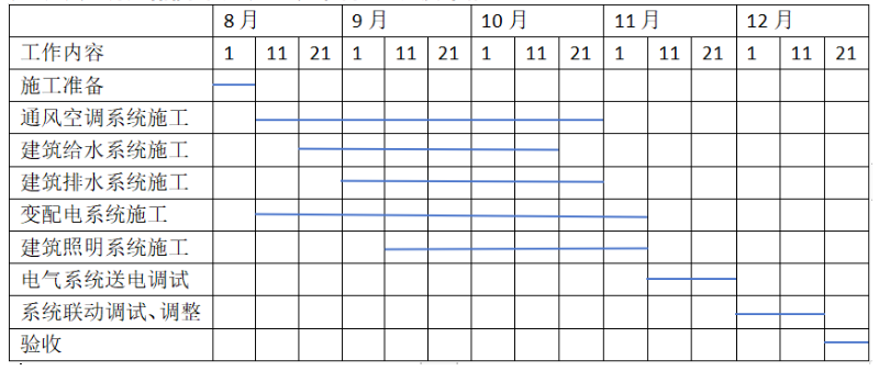 1、(1)一般布置原则,水管让风管,小管让大管,有压管让无压管的原则。排水管道系统和给水管道系统应进行调整。(2)变配电室最迟应在11月10日完成送电
