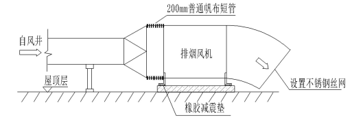 改正:拆除弹簧减振器,将排烟风机直接固定在混凝土基础上。