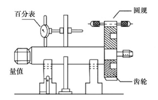 安装公司在某设备进行轴承间隙检测后,采用百分表进行轴承径向测量(图2-1所示),记录百分表最大读数和最小之差。