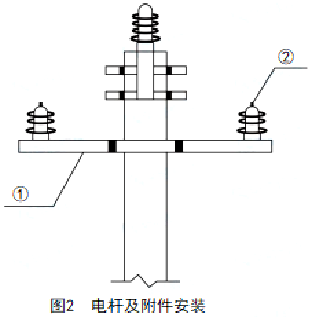 ①是横担。作用:横担是装在电杆上端,用来固定绝缘子架设导线的,有时也用来固定开关设备或避雷器等。