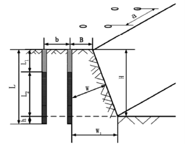 5.a—炮眼间距;W—最小抵抗线;H—台阶高度;L1—堵塞长度。