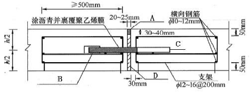 4.A 填缝料、B 套帽、C 传力杆、D 胀缝板。