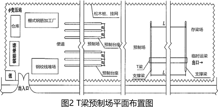 解析:从图上可以看出,B是T梁台座中心线到中心线的距离,另外从背景中"现浇湿接缝钢筋不弯折,两个相邻预制台座间要求具有宽度2m的支模及作业空间"可以看出,在浇筑混凝土T梁时,两片梁湿接缝钢筋不弯折的情况下还要保证有2m的作业间距;