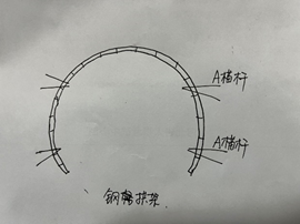 案例题 某二级公路隧道起讫桩号为K8+100~K8+920,双向两车道,隧道围岩级别为V级,围岩岩性为强风化炭质千枚岩,隧道开挖采用环形开挖预留核心土法施工,初期支护中型钢钢架组合安装示意图如图所示,其中,A锚杆杆体采用螺纹钢筋,拱墙二次衬砌采用整体式模筑混凝土,一次浇筑长度为12m。
