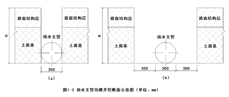 断面形式用(b),因为槽底浇筑混凝土基础,且需要对管道进行全包封处理,以防碾压损伤管道,所以管道周围必须有一定的工作面。