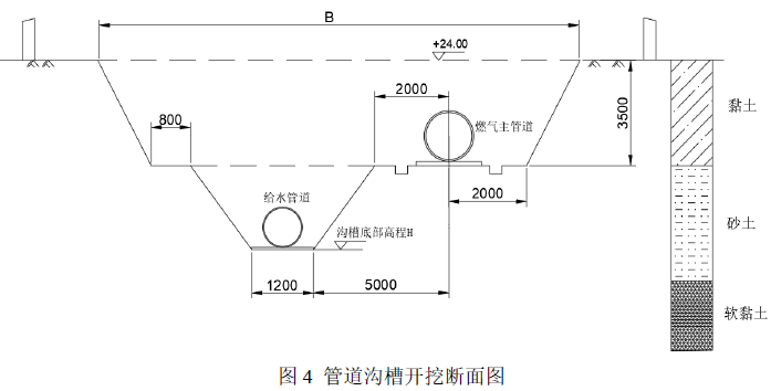 2. 顺序:给水管道→燃气管道;原则:先深后浅。