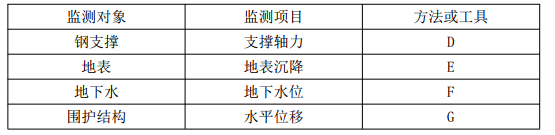 4.D 为轴力计;E 为水准仪、铟钢尺;F 为水位计;G 为测斜仪。