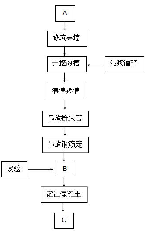 1.A 开挖导沟;B 下导管;C 拔出接头管。