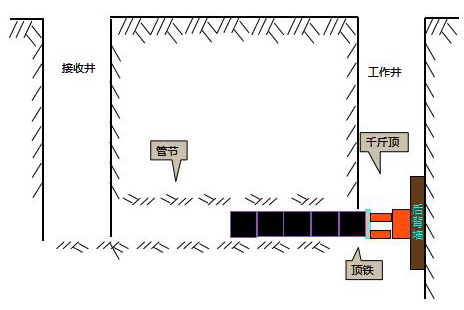 4.管节启动后,出洞前应检查顶进设备(顶铁、千斤顶、油泵、油表)是否运行正常,管节本身是否出现裂痕破坏,沉井井壁是否出现裂痕,顶进开挖面是否稳定等。