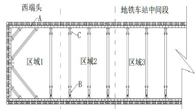 (2)开挖顺序:区域1→区域2→区域3。