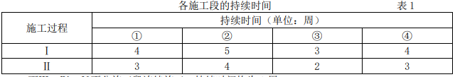 Ⅰ、Ⅱ两项在各施工段上持续时间如表 1 所示: